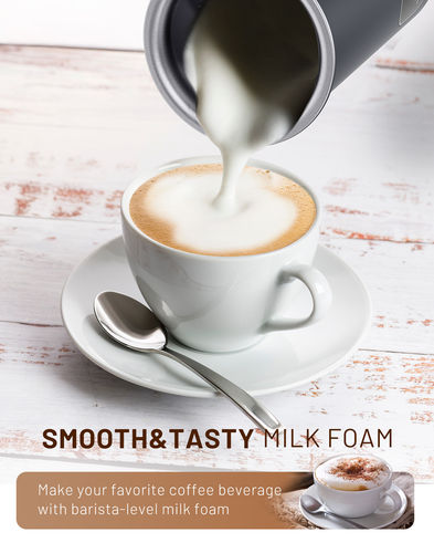 -Rich and Creamy Milk Froth: This frother quickly produces smooth, velvety foam for your cappuccinos, lattes, macchiatos, iced coffees, and other beverages. For optimal results, it is recommended to use milk with a fat content above 3%