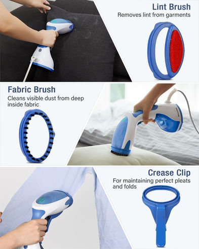 3 additional attachments lint brush, soft brush, and creaser provide versatile steaming options