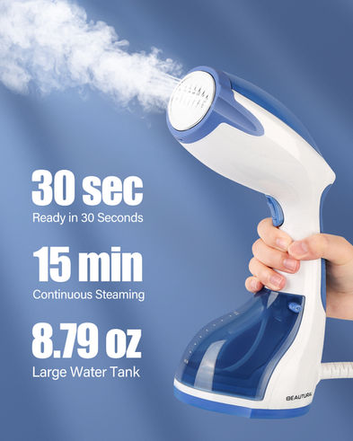 BEAUTURAL 1200-Watt Handheld Steamer for Clothes, 30-Second Heat-up, 8.79-Ounce Water Tank, Dark Blue