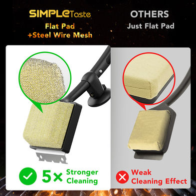 Safe & Efficient: SIMPLETASTE bristle-free grill brush combines a heat-resistant fiber layer and steel mesh for 5x friction-enhanced efficient cleaning, eliminating stubborn barbecue stains and residue without the risk of bristles ending up in your food. Enjoy safe and delicious BBQ meals!