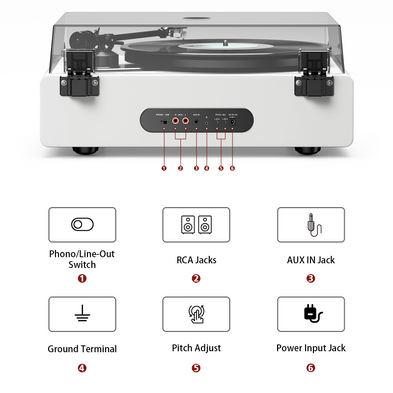 Built-in 4 Speaker: Equipped with 2 silk tweeters and 2 mid-bass speakers, this record player delivers well-balanced, studio-quality sound. Experience powerful bass and crisp, clear tones with minimal distortion