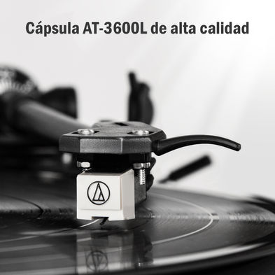 -Cápsula Magnética y Contrapeso Ajustable: La cápsula premium AT-3600L sigue con precisión los surcos del vinilo para ofrecer un audio de alta definición, mientras que el contrapeso ajustable garantiza una reproducción suave, sin ruidos, con un sonido cálido y envolvente.